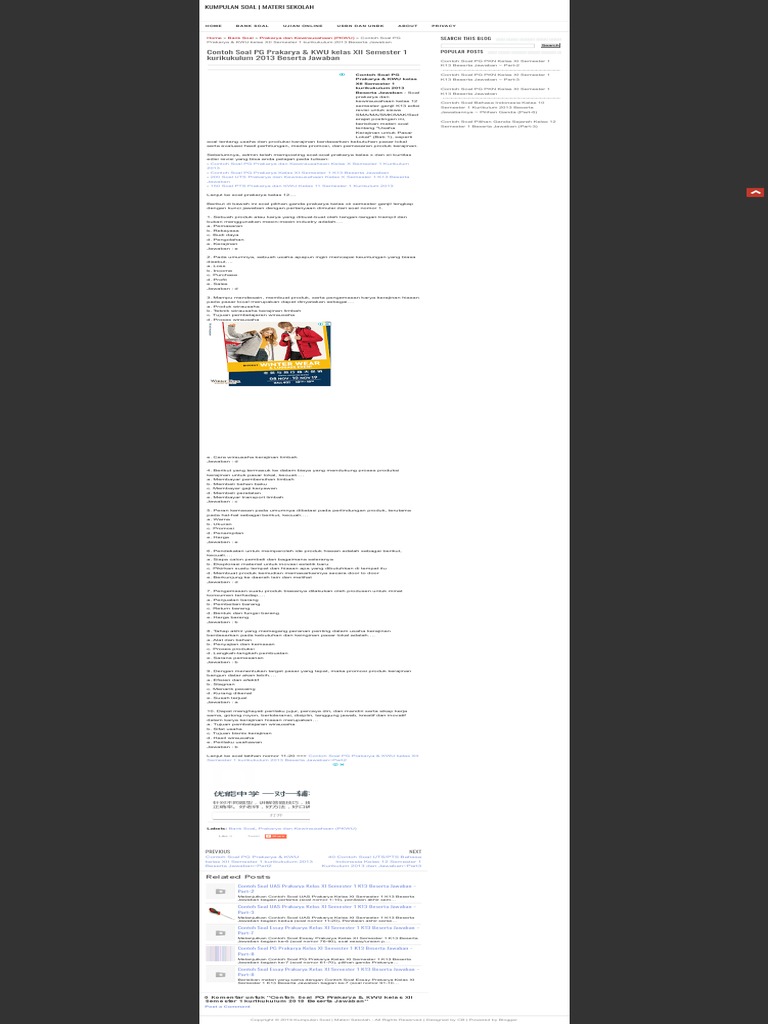 2013/2014, kelas 3 smk, kewirausahaan, kunci jawaban, un.menurut uud 1945, kekuasaan yudikatif dilaksanakan oleh…. Buku paket prakarya dan kewirausahaan kelas xi/11 sma semester 2 … Perencanaan usaha kerajinan untuk pasar lokal. Kewirausahaan sendiri akan meningkatkan ekonomi yang sangat signifikan bagi bangsa untuk mendukung kesejahteraan masyarakat di era yang serba modern seperti sekarang ini. Materi untuk kelas xii smk semester 2: 80 soal pilihan ganda prakarya dan kewirausahaan kelas xii smasmk beserta jawaban soal pilihan ganda prakarya dan kewirausahaan beserta jawaban 1. Kherysuryawanid judul dan peta materi yang akan di pelajari pada mata pelajaran prakarya dan kewirausahaan pkwu di kelas xii sma pada semester 1 hingga semester 2 kurikulum 2013. Ki dan kd prakarya dan kewirausahaan sma_ma xi semester 1_2 materi pelajaran prakarya dan kewirausahaan sma/ma/smk/mak kelas x … Download materi bab i disini. Get paid to share your links! Setelah mempelajari bab ini, peserta didik mampu: Soal kewirausahaan kwu kelas 12 sma ma dan kunci jawaban contoh rpp mata pelajaran produk kreatif dan kewirausahaan kelas 12 educating and informated materi produk kreatif kewirausahaan bab 1 sikap dan perilaku wirausahawan smk indonesia 1 doc produk kreatif dan kewirausahaan untuk smk n 1 bawang kelas xii otkp ahmad sakdun academia edu Materi prakarya dan kewirausahaan kelas xii 1.modul kewirausahaan smk a.pdf soal uas prakarya dan kewirausahaan kelas xii sma kurtilas bab kerajinan dan pengolahan