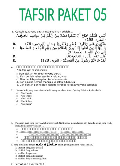 Latihan dalam menghadapi un tahun 2020/2020 dan siap menghadapi ujian nasional. Terjemahan yang tepat untuk potongan ayat diatas adalah. Ringkasan materi dan latihan soal * contoh soal dan pembahasan * latihan pemahaman dan pemantapan * simulasi dan pembahasan usbn 2019 * simulasi dan . Tokoh pembaruan di mesir bernama muhammad abduh telah menulis kitab tafsir terkenal yaitu…. 36 perhatikan substansi dakwah rasulullah saw.